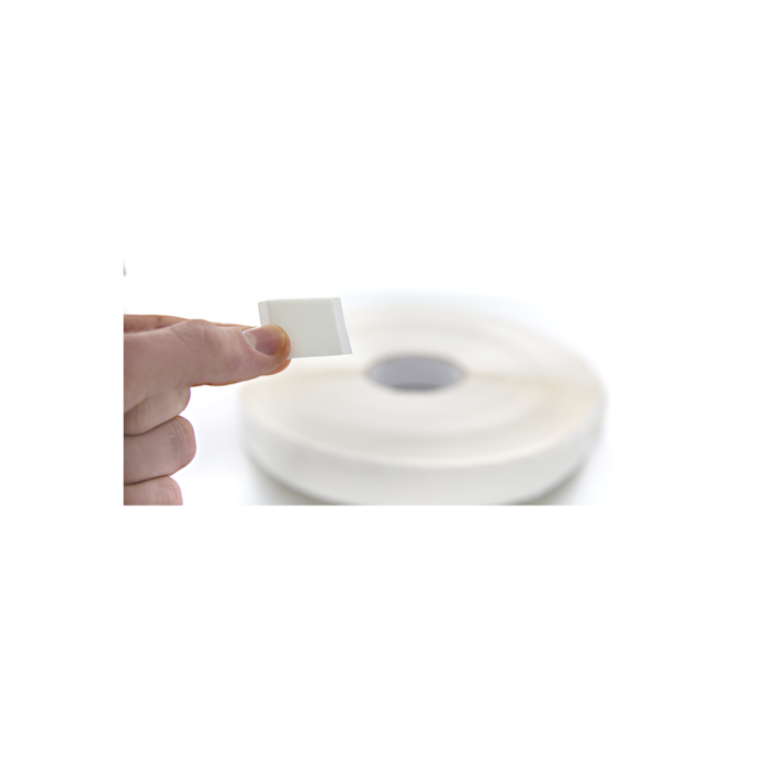 Die cut from double sided tape with cover and tab for easy removal from cover,